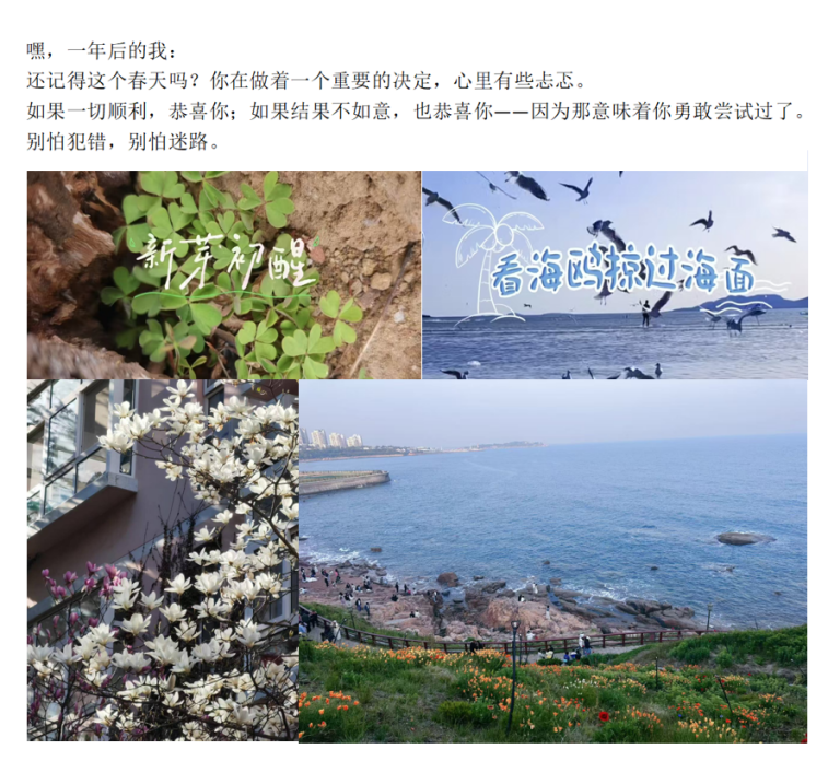 在征文中,同学们写下“写给自己的春日心语”,把那些未曾说出口的情绪轻轻安放——或是成长路上的迷茫与突破,或是对未来的期待与不安,也或是日常生活中被忽略的点滴温暖。