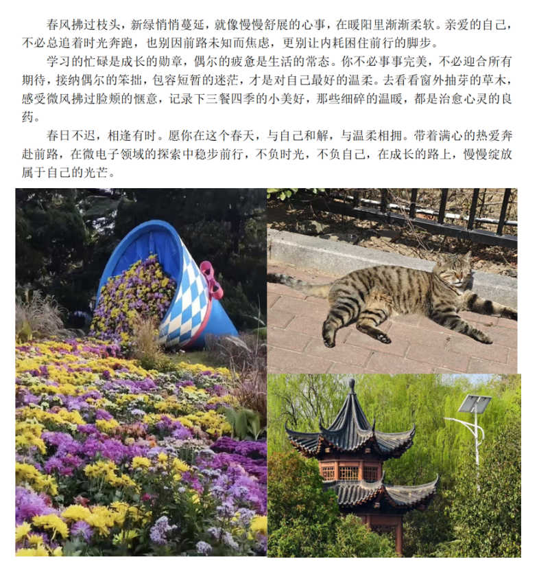在3·25“善爱我”心理健康日来临之际,微电子学院心理工作站以“心向暖阳·悦纳自我”为主题,于3月19日-23日开展线上作品征集活动。本次活动面向全院学生开放,设置了征文、摄影与短视频三类形式,引导学生通过不同方式表达内心想法。